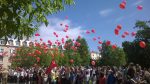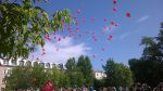Ребята отпустили в небо красные шары в память о юных защитниках, ушедших на фронт в 1941 году сразу после окончания школы.