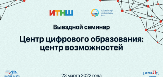 Ежегодно в рамках Петербургского международного образовательного форума проходит Всероссийская конференция с международным участием «Информационные технологии для Новой школы» (ИТНШ). В этом году состоялась уже юбилейная, Десятая конференция. В 2016, 2017 и 2018 годах основной площадкой конференции становилась школа № 509. В 2019 году основная площадка конференции сменилась, но наша школа провела в рамках ИТНШ-2019 выездной семинар «Система управления образовательной организацией с использованием информационных технологий».