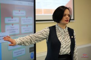 На семинаре выступила Алла Николаевна Данькевич, заместитель директора по воспитательной работе ГБОУ № 509, с докладом «Завтра начинается сегодня», в котором рассказала об опыте школы как экспериментальной площадки, а также о том, как совместить существующую уникальную систему воспитательной работы школы и структуру мероприятий Российского движения школьников, используя возможности Отделения дополнительного образования и Внеурочной деятельности.